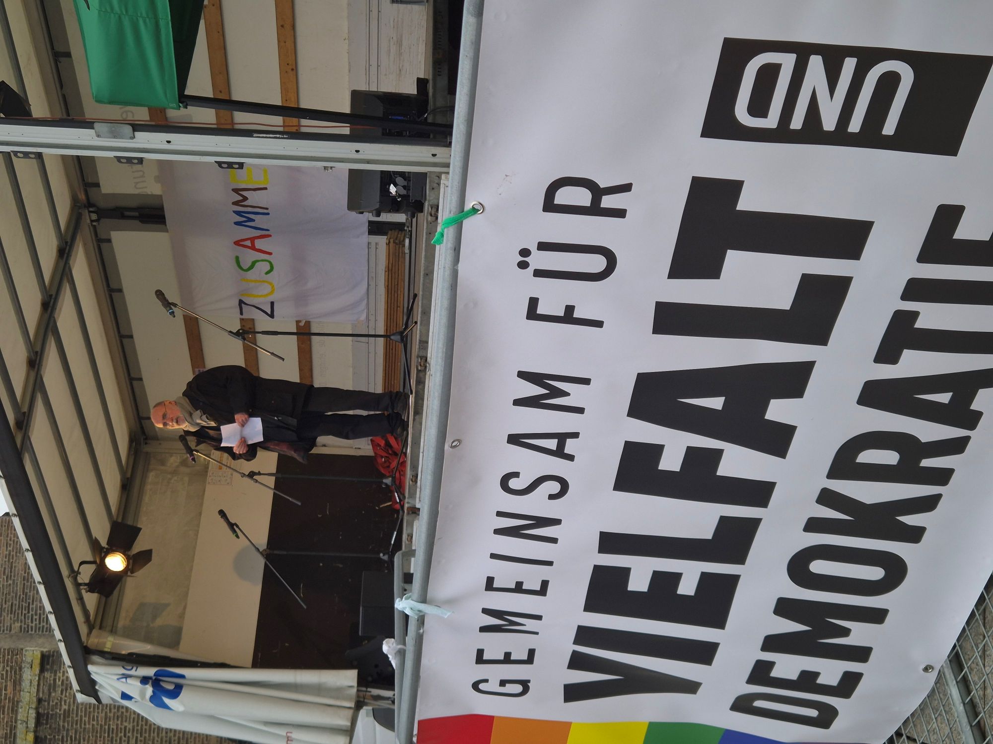 Als prominenter Redner sprach Oberbürgermeister Martin Ansbacher. Er unterstrich, dass Demokratie mehr sei als ein politisches System – sie sei eine innere Haltung. Angesichts des weltweiten Drucks auf demokratische Strukturen sei es umso wichtiger, dass Menschen bereit seien, öffentlich für die demokratischen Grundwerte einzustehen.